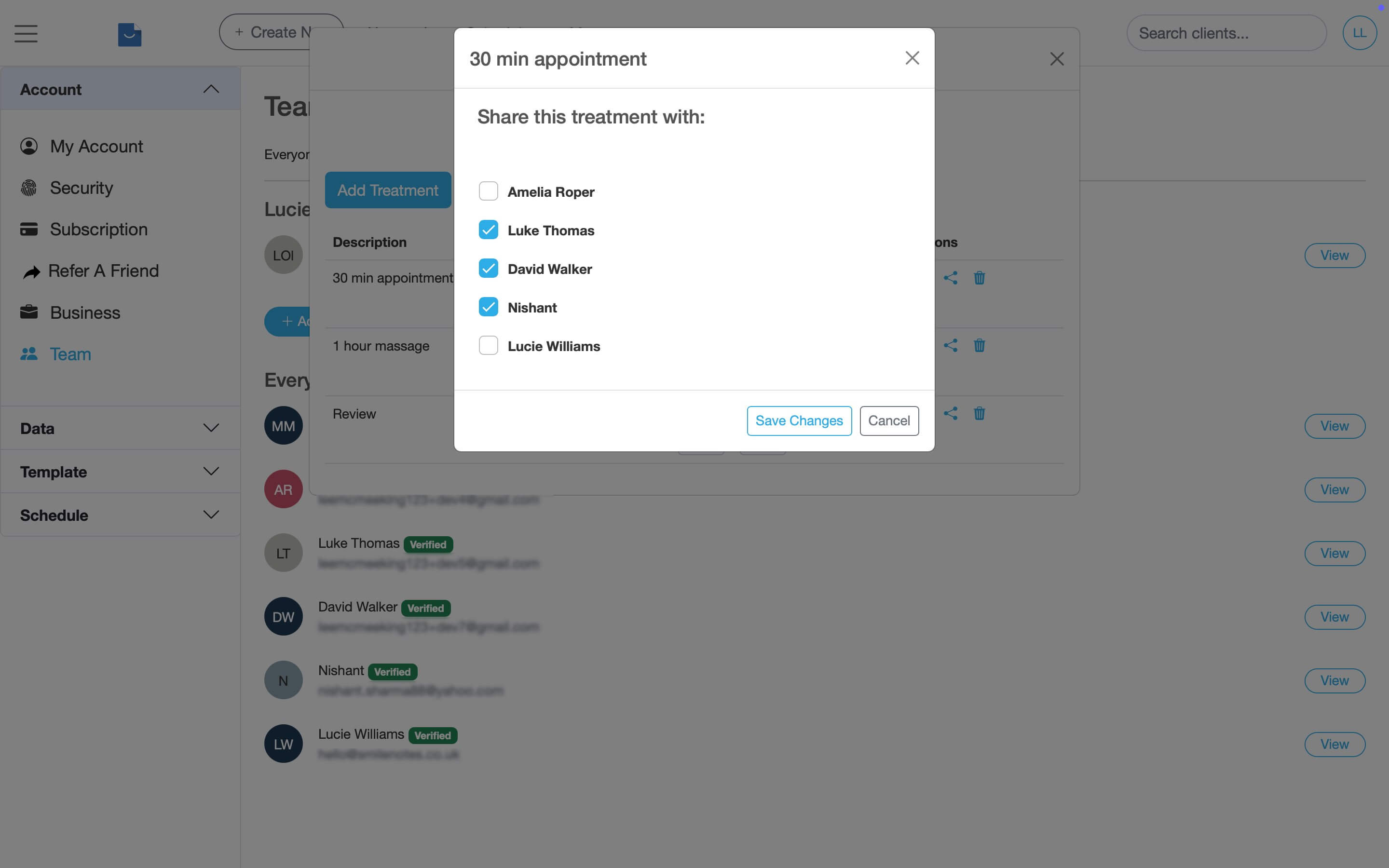 When you share a treatment, each team member will recieve an email confirmation. Just repeat this process for the treatments you wish to share.